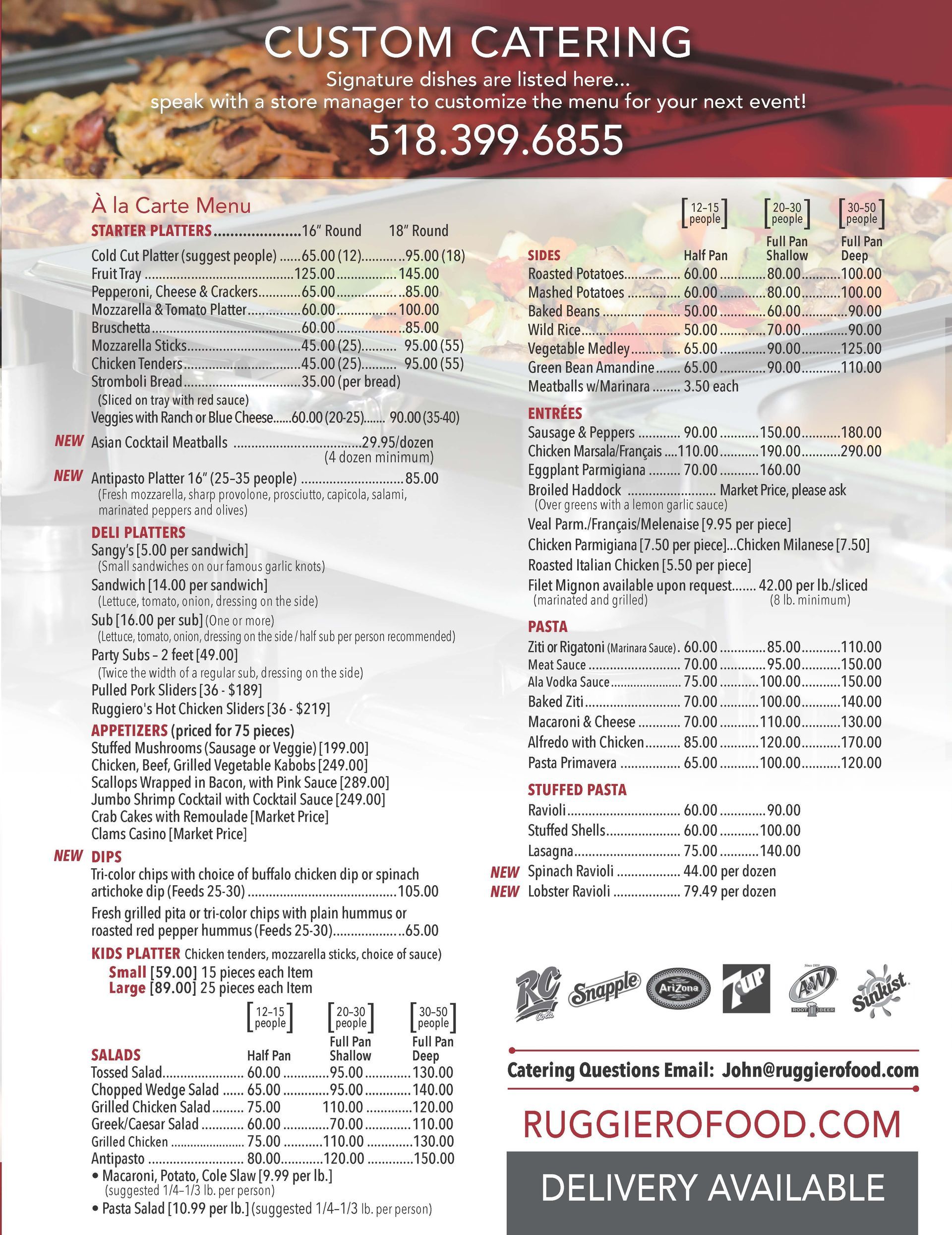 In addition to full-service catering, we offer delivery catering. Our drop-off catering is perfect for offices, schools, and private gatherings with fresh, delicious menu selections that will meet all of your needs and budget.