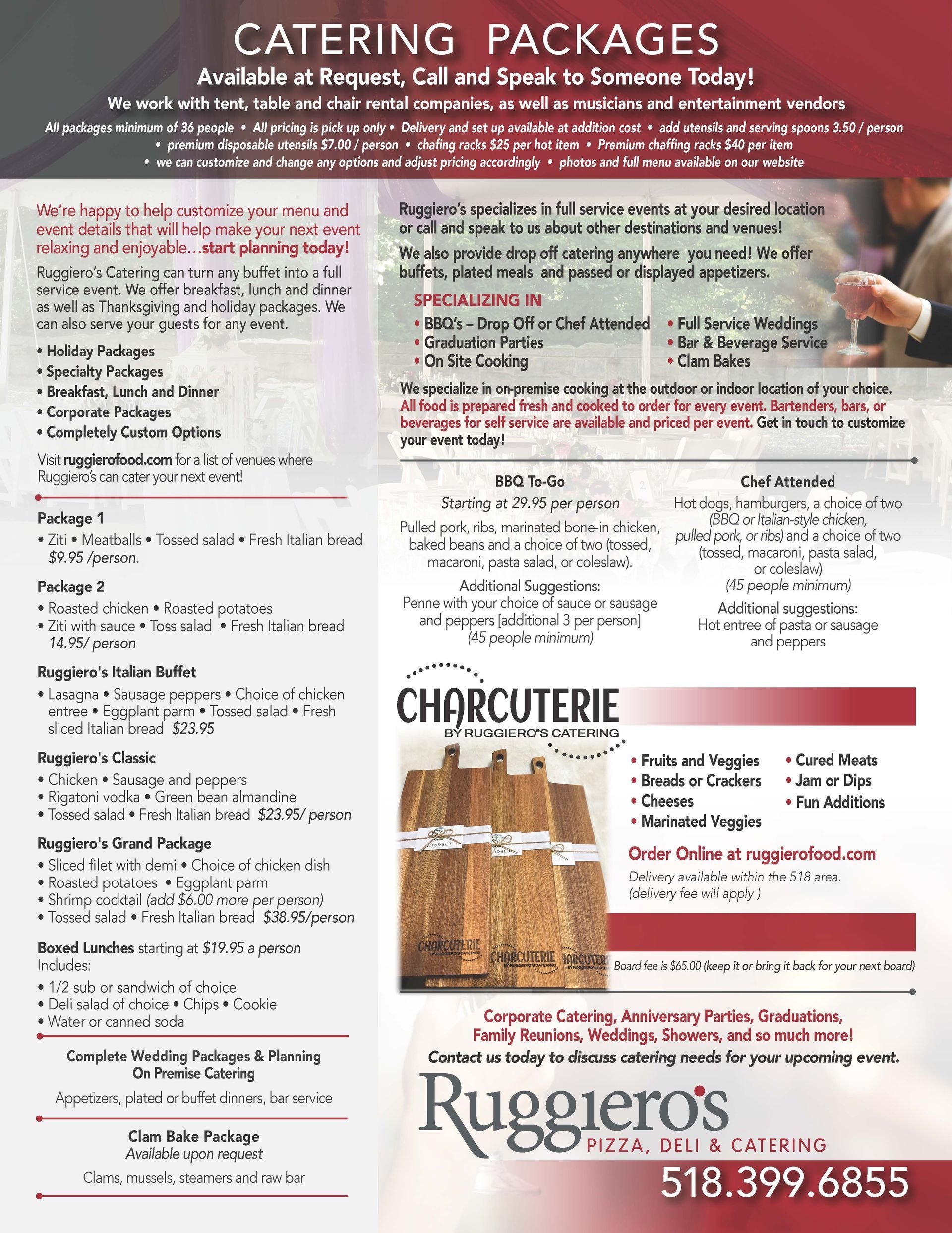 Ruggiero's is a reputable catering service known locally in Albany, NY, Schenectady, NY, and Saratoga for providing the best quality food and service. Get in touch today to discuss your event, venue, or catering requirements – and allow us to help make your special day totally unforgettable.